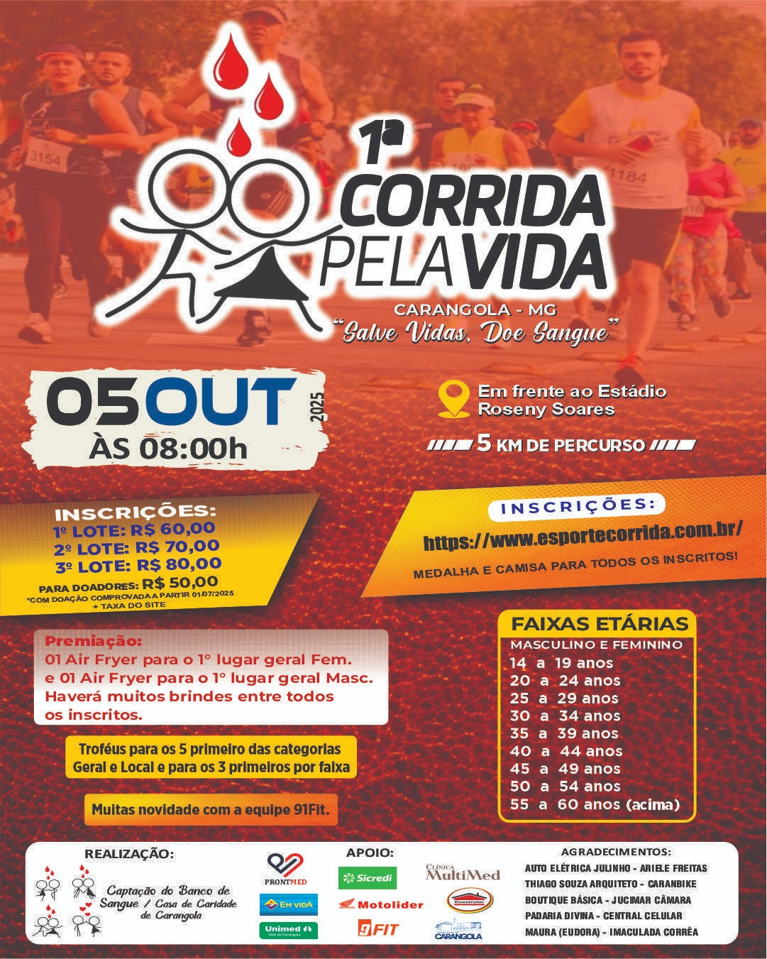 Corrida Solidária campanha Salve vidas, doe sangue!