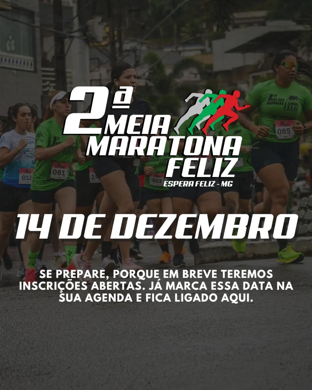 2 Meia Maratona Feliz Meia Maratona Expirado 14 Dez - 2025 · 00:00 > 14 Dez - 2025 · 22:59 Espera Feliz - MG 2 Meia Maratona Feliz (Foto: Reprodução)