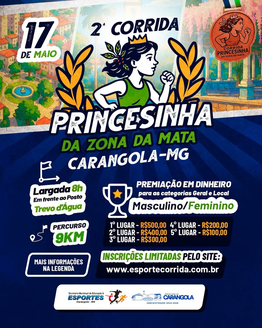 2 Corrida Princesinha da Zona da Mata Corrida rústica 17 Mai - 2026 · 00:00 > 17 Mai - 2026 · 23:59 Carangola - MG 2 Corrida Princesinha da Zona da Mata (Foto: Reprodução)