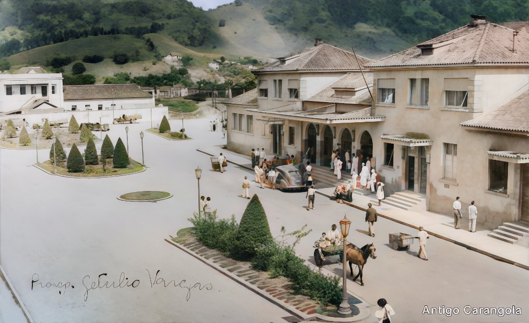 Carangola Antiga Fotos restauradas com tecnica coloração e IA. Cidade de Carangola, num época ainda das linhas do trem. Trabalho gerado por Washington Peron (Click Fotografia) 21/03/2025