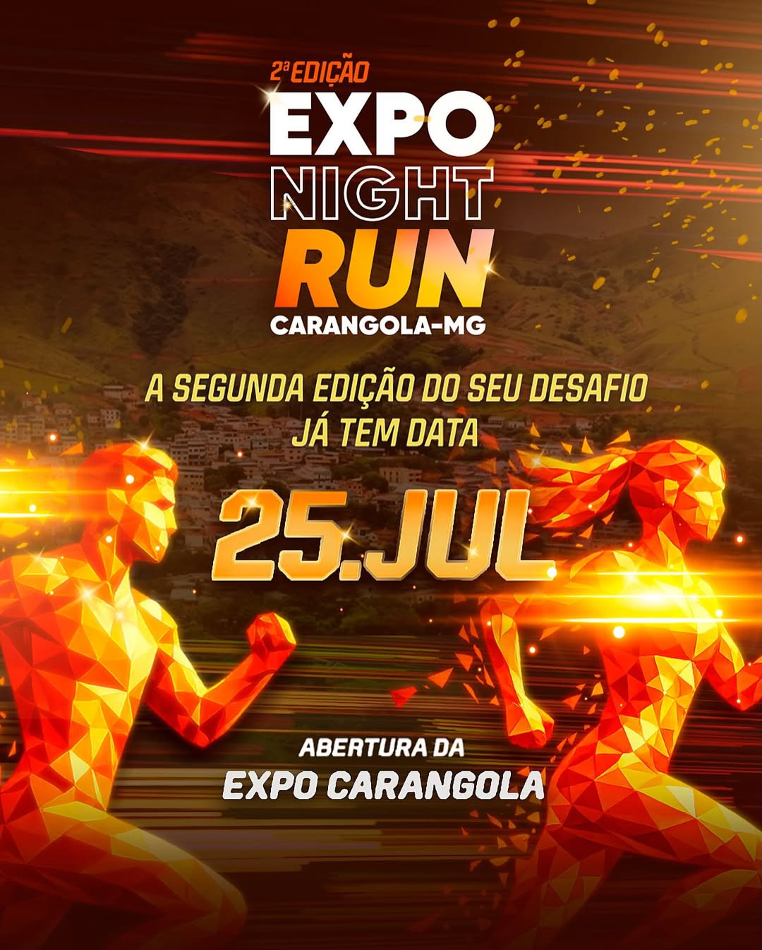 Expo Night RUN Corrida rústica noturna 25 Jul - 2026 · 00:01 > 25 Jul - 2026 · 22:59 Carangola - MG Expo Night RUN (Foto: Reprodução)